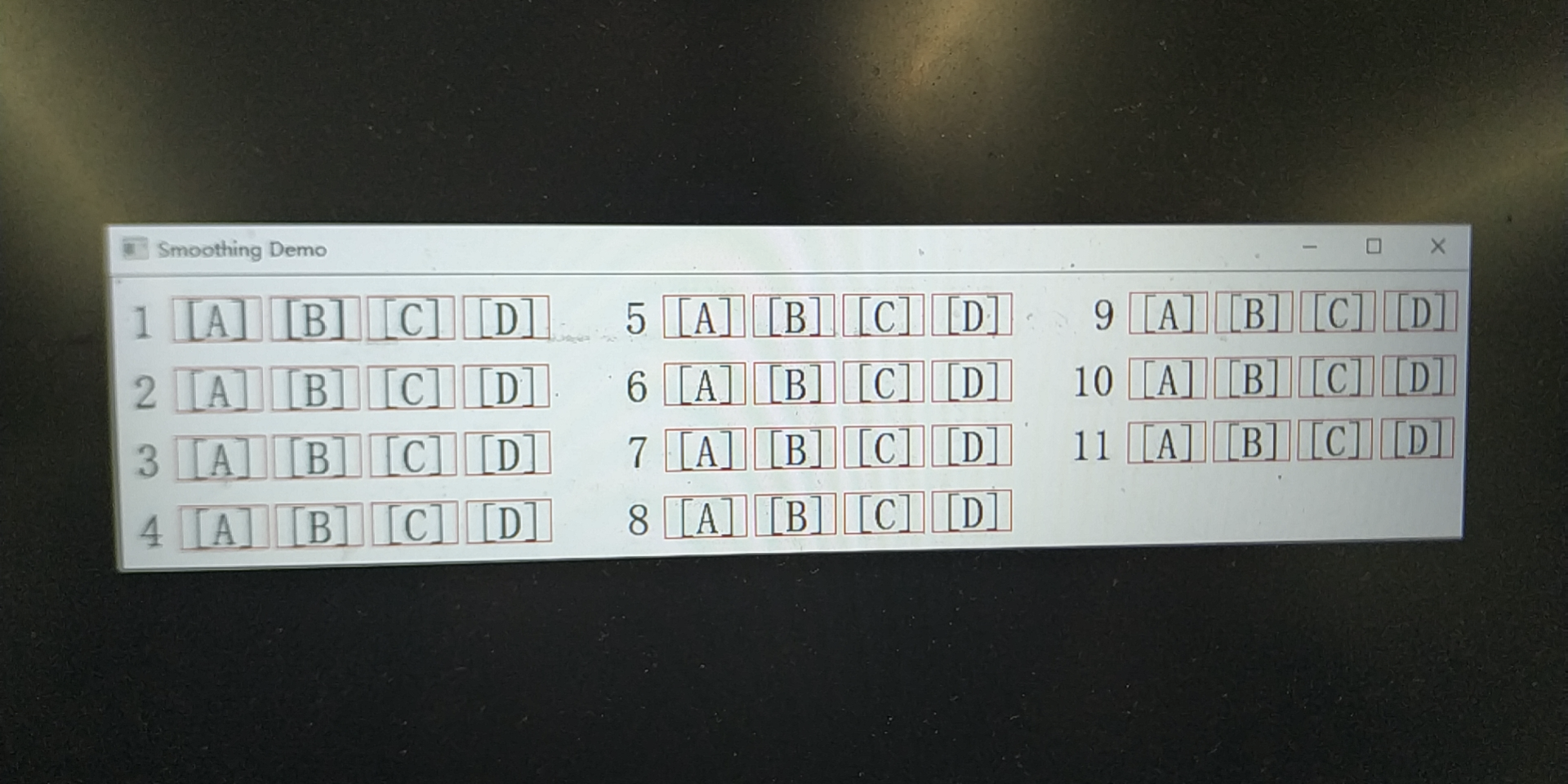 中途做了一个小例子: 答题卡上有很多的选项,要查看考生选择(涂黑)了哪个,首先需要知道每个选项的区域,然后再来判断区域是否被涂黑了。