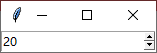 #上面的代码将变量v与sb绑定,并将Spinbox的初始值设置为20,运行程序,Spinbox的值显示为20,再点击up按钮,此时值变为40