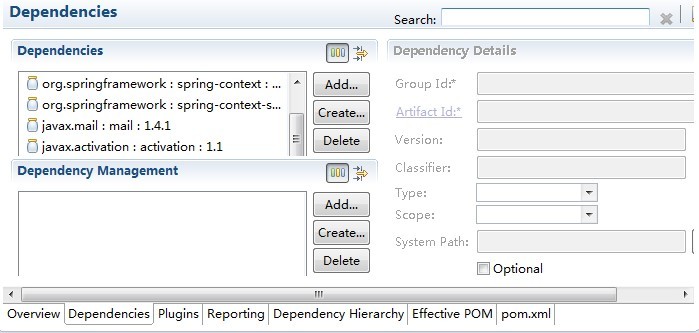 表示依赖列表,maven eclipse插件已经实现,有图形化显示,在pom.xml的dependencies页