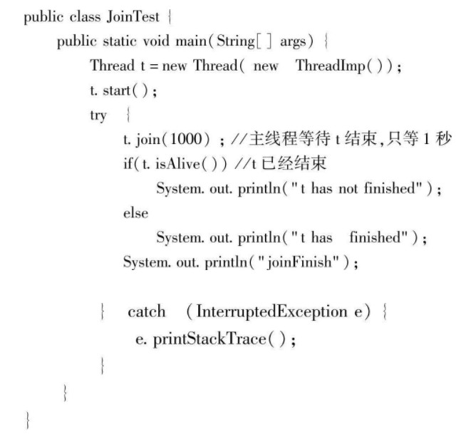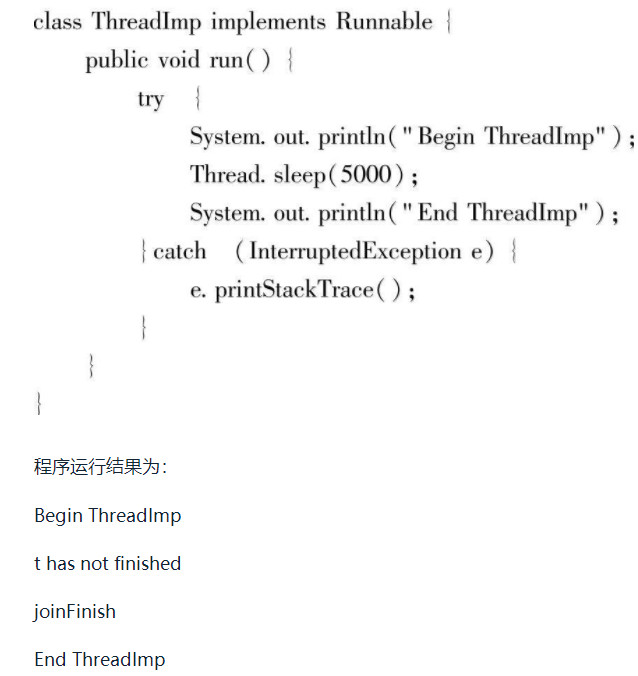如果程序因为 I/O 而停滞,进入非运行状态,基本上要等到 I/O 完成才能离开这个状态,在这种情况下,无法使用 interrupt()方法来使程序离开 run()方法。这就需要使用一个替代的方法,基本思路也是触发一个异常,而这个异常与所使用的 I/O 相关,例如,如果使用 read-Line()方法在等待网络上的一个信息,此时线程处于阻塞状态。让程序离开 run()方法就是使用 close()方法来关闭流,在这种情况下会引发 IOException 异常,run()方法可以通过捕获这个异常来安全地结束线程。