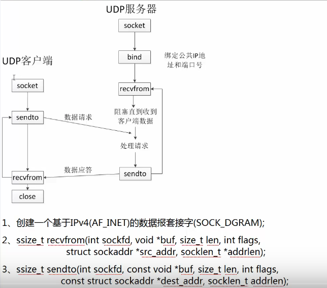 //因为一开始客户端没有recvfrom,故不知道server的IP和端口,
