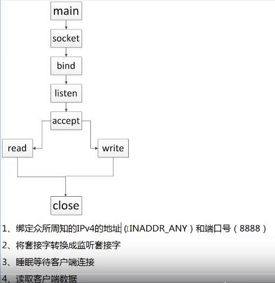 server_ip.sin_port =htons(8888);//将主机数据转换为网络数据作为端口