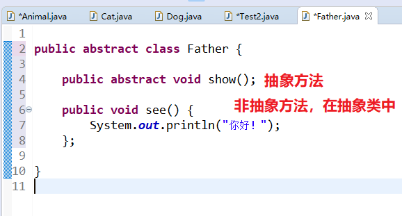 5)抽象类是类的模版,当作父类就是用来被继承的