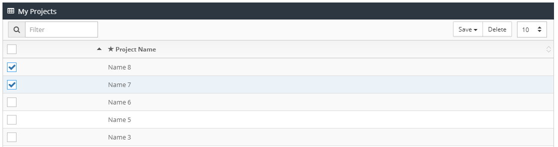 I have a table showing project names as shown in below image ,