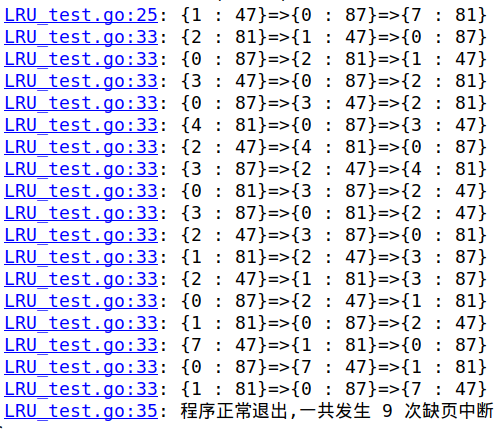 t.Log("程序正常退出,一共发生",LFU.count,"次缺页中断")