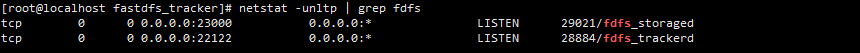 tcp 0 0 0.0.0.0:23000 0.0.0.0:* LISTEN 2323/fdfs_storaged