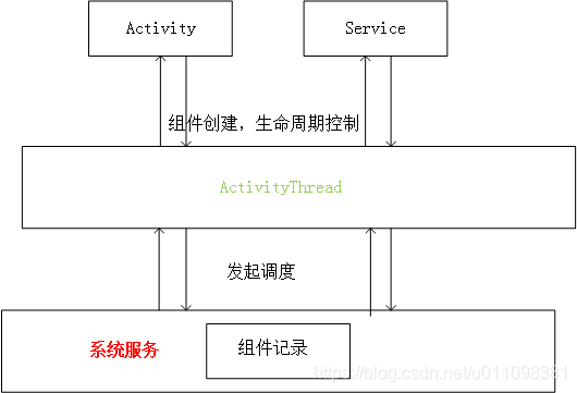 主线程(可以理解为应用进程的大管家):每一个进程都会有一个主线程;ActivityThread中负责分发创建Activity,Application以及生命周期状态同步更新,于此同时还与AMS等系统服务交互, 内部还支持AMS向应用进程通信(ApplicationThread)。