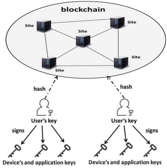 该方案不设置根密钥,并且该站点将区块链构成为信任锚,其通过存储哈希来保证下一层密钥的真实性。区块链是一个分散的系统,节点之间的消息确认是基于密码而不是信任。区块链中任何节点的故障都不会影响整个系统的可用性。这避免了单点故障。