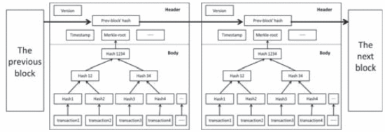 - 区块链是由一串使用密码学方法产生的数据块组成的,每一个区块都包含了上一个区块的哈希值(hash),从创始区块(genesis block)开始连接到当前区块,形成块链。每一个区块都确保按照时间顺序在上一个区块之后产生,否则前一个区块的哈希值是未知的。这些特征使得比特币的双花(double-spending)非常困难。区块链是比特币的核心创新。