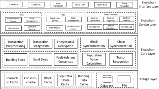 该系统主要采用三层体系结构,包括智能设备层,区块链层和DAPP层,其中智能设备和区块链节点通过节点到节点映射的机制相连。区块链节点采用分布式架构,通过一致性算法实现账户的共享和维护。DAPP层主要为数据使用者提供数据服务接口。DAPP开发人员可以根据用户的实际需求开发个性化的DAPP应用程序。开放式区块链系统采用发放令牌激励用户和分配权益的方式,鼓励所有参与者积极参与系统维护,确保其稳定运行。