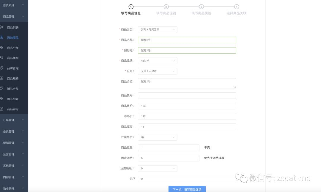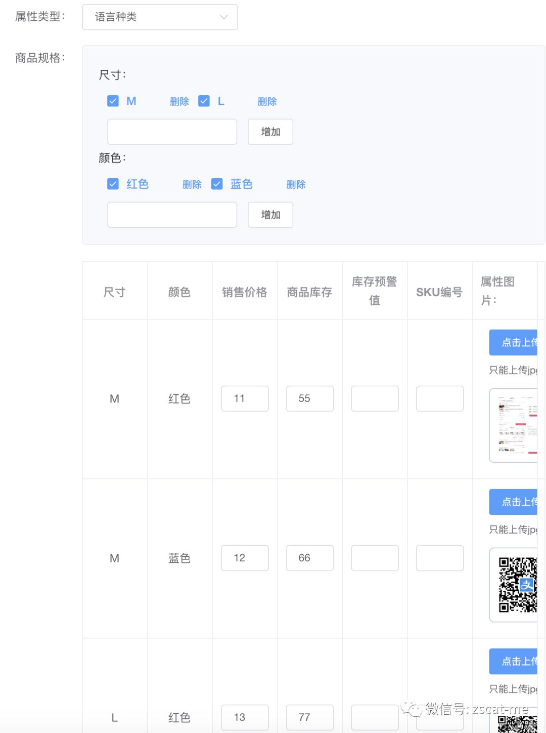选择属性,添加规格并且勾选,点击下面的刷新列表 ,生成规格商品并完善信息,最后保存