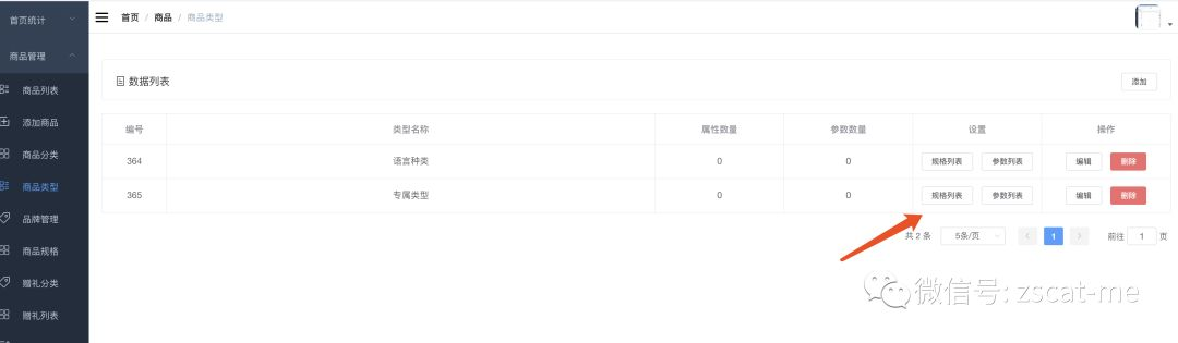 添加类型,并可以配置规格和参数