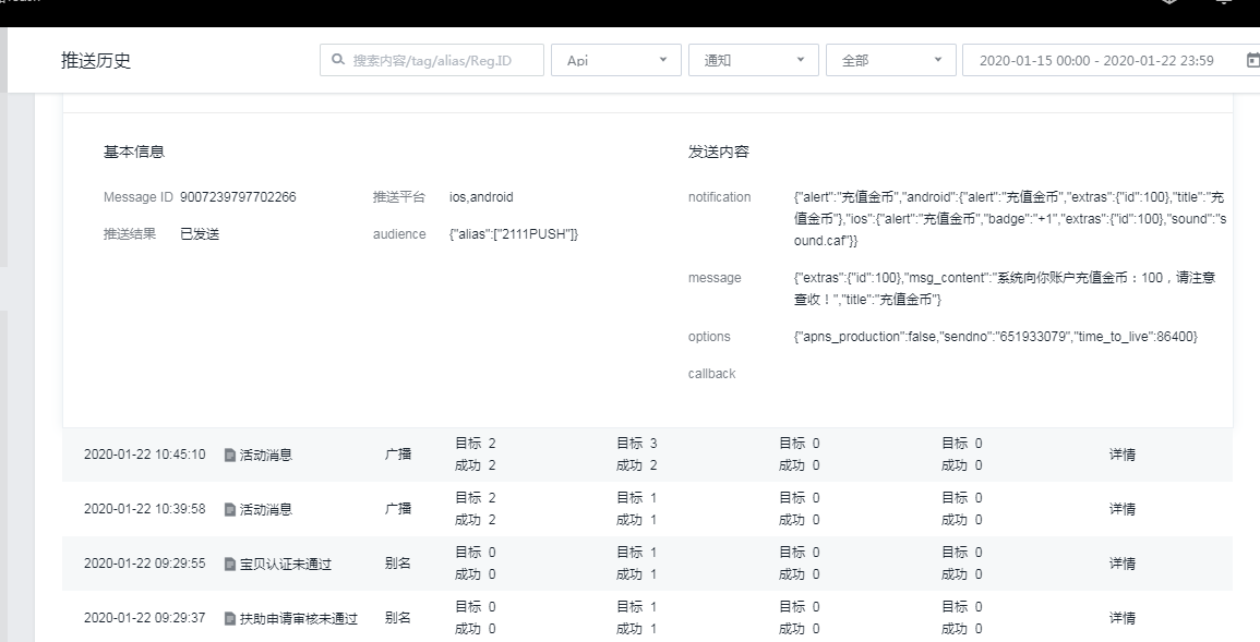 // 一般情况下,关于 audience 的设置只需要调用 addAlias、addTag、addTagAnd 或 addRegistrationId