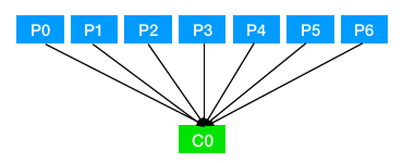 下面再来看一下消费组内的消费都个数变化时所对应的分区分配的演变。假设目前某消费组内只有一个消费者C0,订阅了一个主题,这个主题包含了7个分区:P0、P1、P2、P3、P4、P5、P6。也就是说,这个消费者C0订阅了7个分区,具体情况如下图: