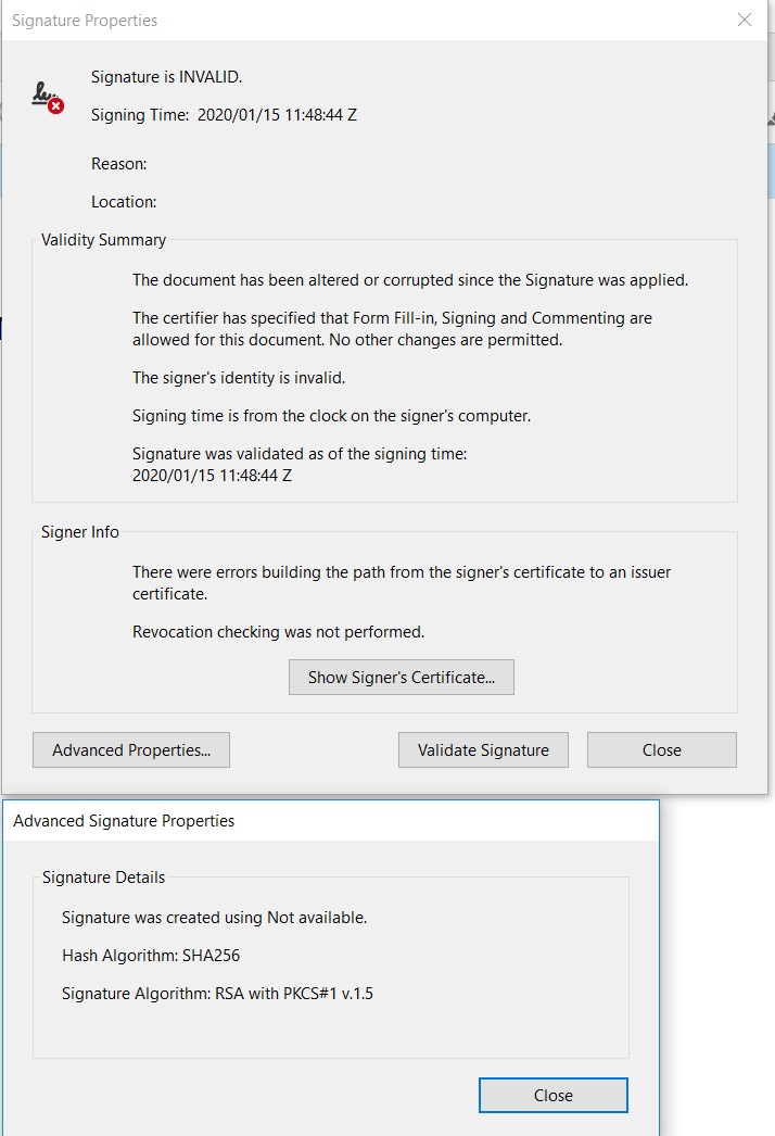 UPDATE Tested the PDF signature with the mkl test area, obtaining the following results: