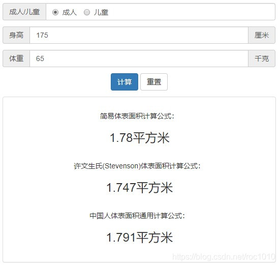 本计算器可用不同的公式计算身体表面积。 体表面积(BSA) 是应用于医药领域的单位, 如用药剂量、还包括描述性统计等。
