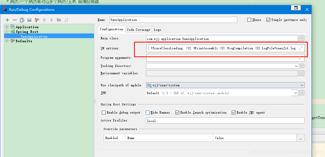 -server -XX:+UnlockDiagnosticVMOptions -XX:+TraceClassLoading -XX:+PrintAssembly -XX:+LogCompilation -XX:LogFile=jit.log