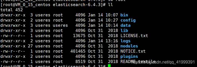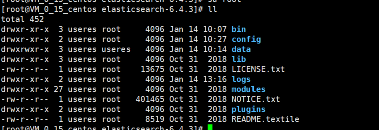 3:解压之 tar -zxvf elasticsearch-6.4.3.tar.gz 整体目录如下