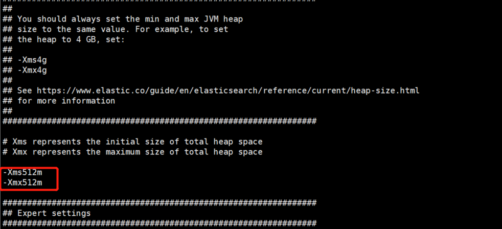 修改相关文件配置。由于这个服务器是1核1G的。es默认配置-Xms 和-Xmx都是1G 一般是需要启动将其增加到4G左右。但是