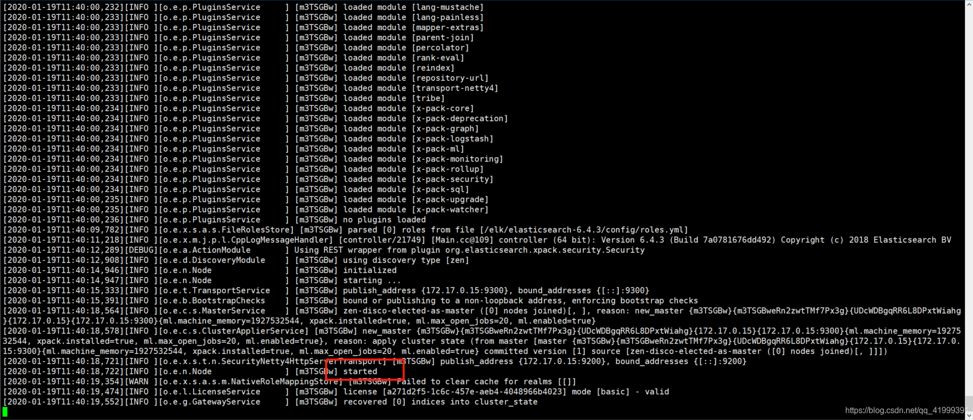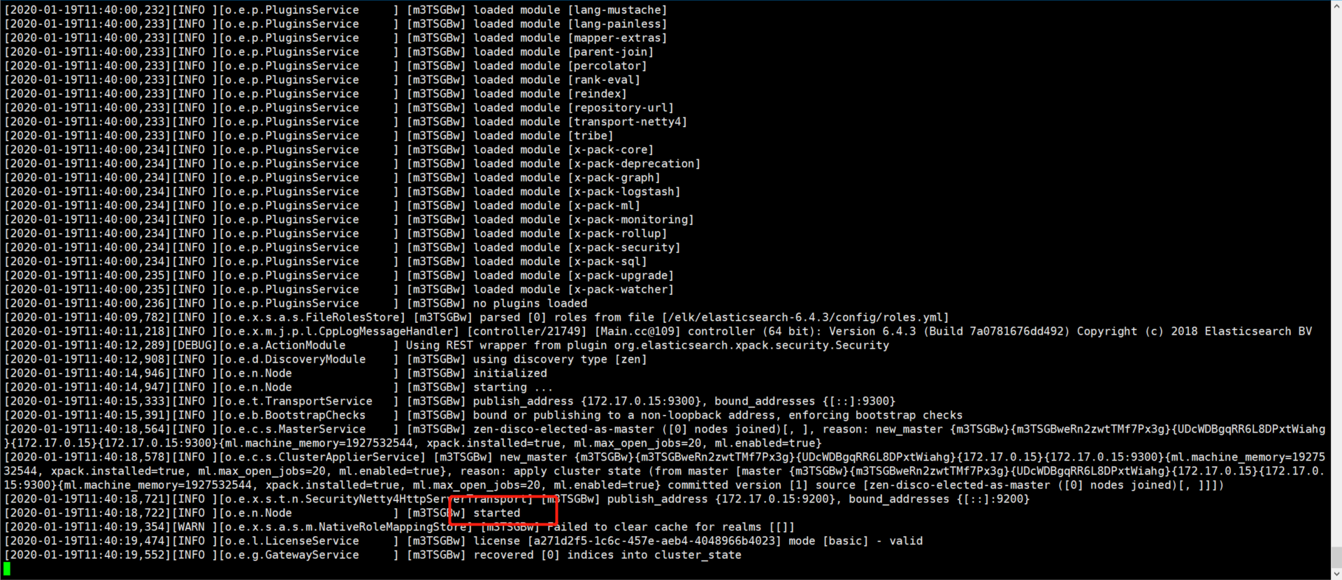 然后启动es 执行es文件夹 bin 目录下 elasticsearch即可 started即为启动成功