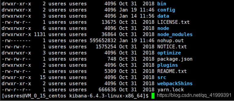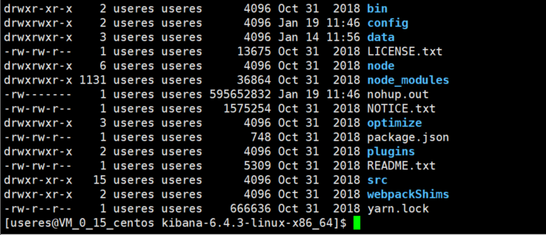 cd /elk;wget https://artifacts.elastic.co/downloads/kibana/kibana-6.4.3-linux-x86_64.tar.gz ;tar -zxvf kibana-6.4.3-linux-x86_64.tar.gz 。解压后目录如下