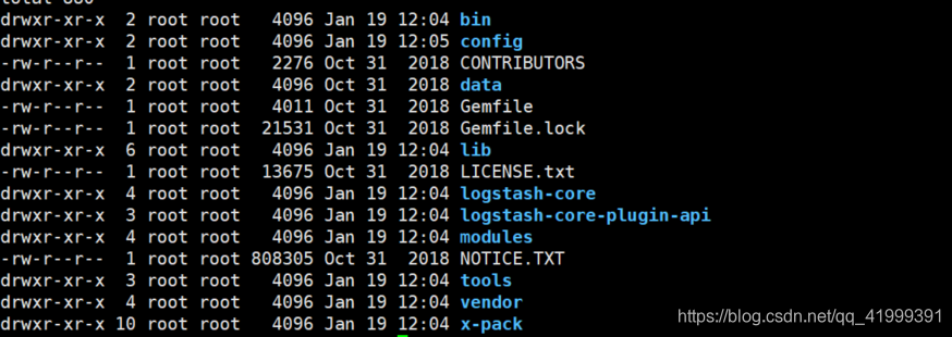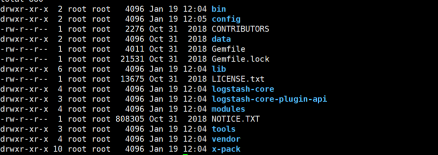 下载解压wget https://artifacts.elastic.co/downloads/logstash/logstash-6.4.3.tar.gz; tar zxvf logstash-6.4.3.tar.gz 解压后目录如下