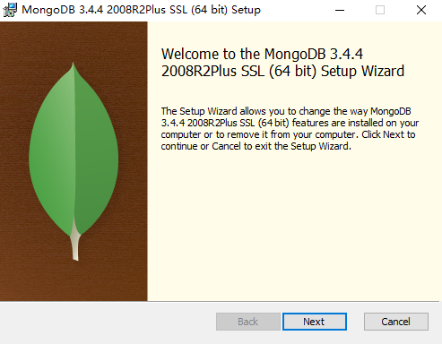 安装:开始尝试在mongodb官网下载了最新版本3.6.1的版本无法进入安装,因为其内部需要访问到compass-install.exe,如果是个人电脑,相信是没有问题的
