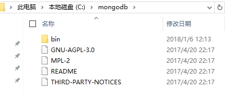 选择一个安装位置,选择一个选择的安装位置(C:\mongodb),安装完成后,可以看到安装后的文件已经存在该目录下了