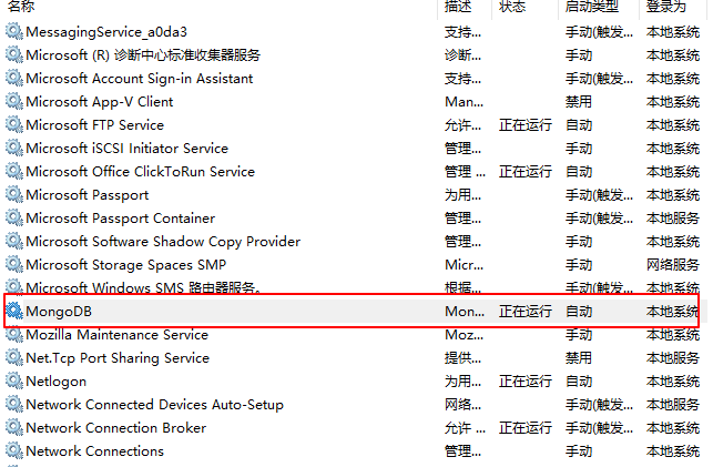 查看系统服务时,可以看到MongoDB的服务正在运行
