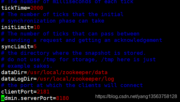 注意,dataDir 、dataLogDir的位置要根据自己创建的log、data路径填写。