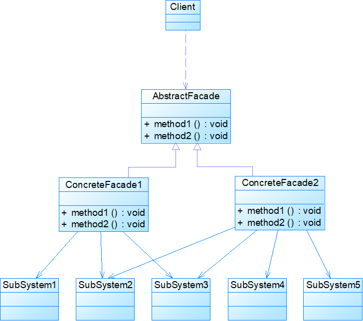 2) 在不引入抽象外观类的情况下,增加新的子系统可能需要修改外观类或客户端的源代码,违背了“开闭原则”。