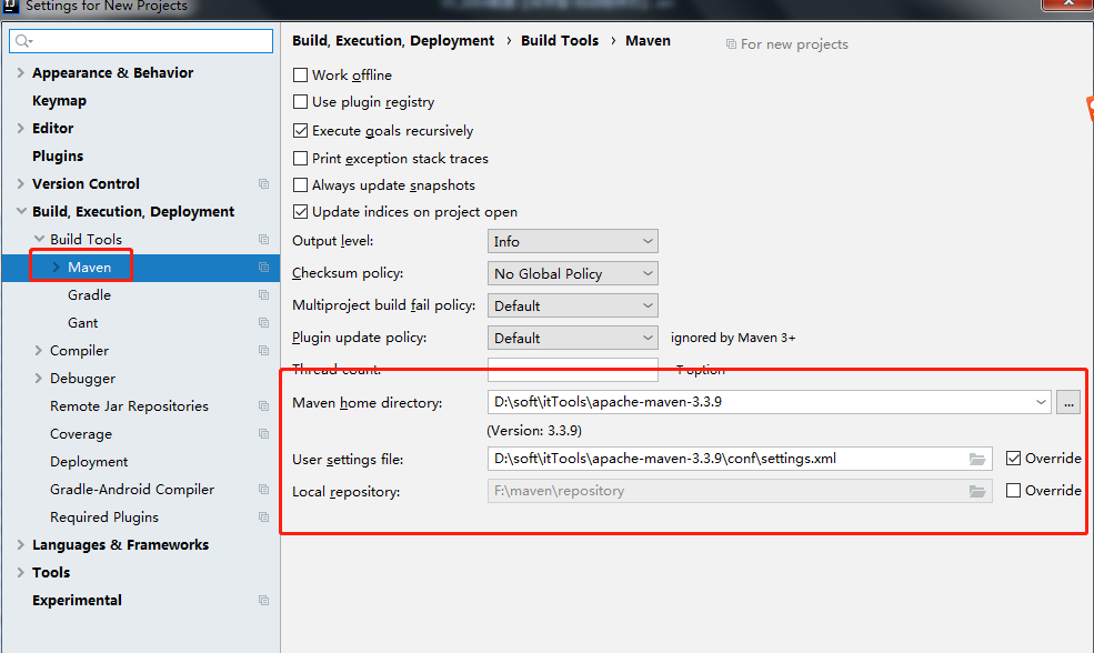 点击file-settings-Build、Execution、Deployment-Build Tools-Maven,如图: