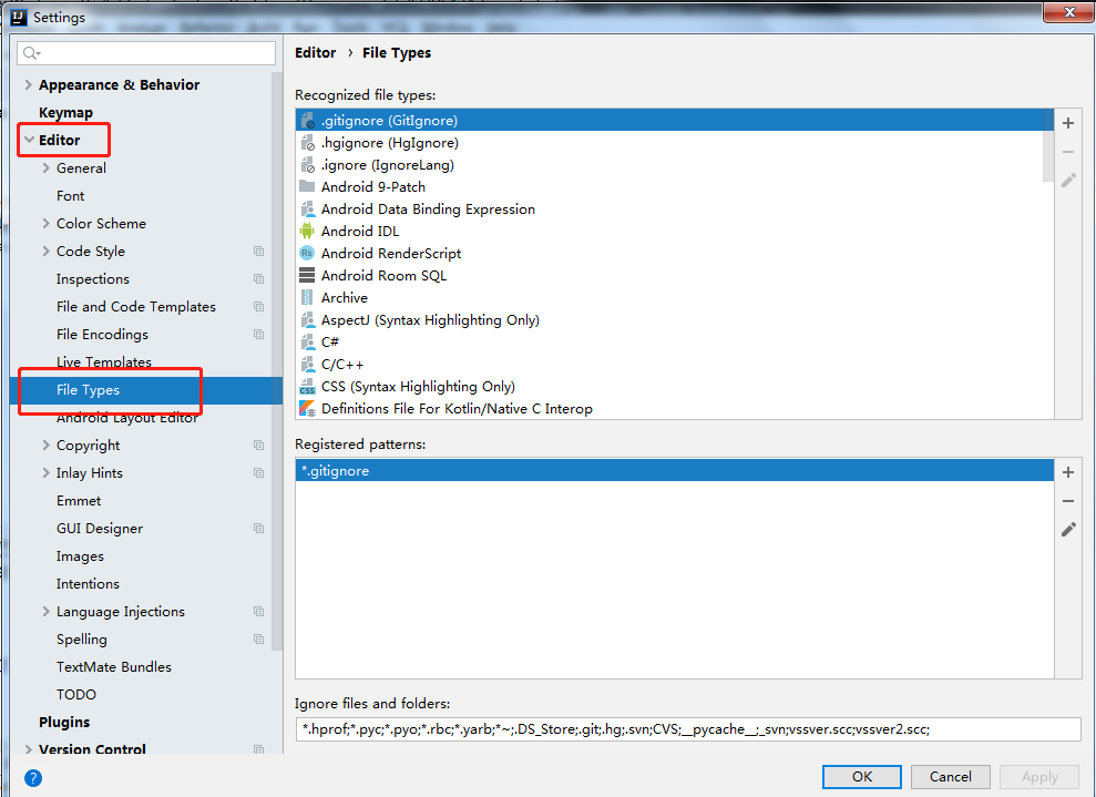在最下方的Ignore files and folders下,添加需要过滤掉的文件或者目录,如图: