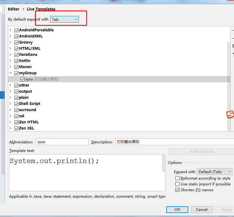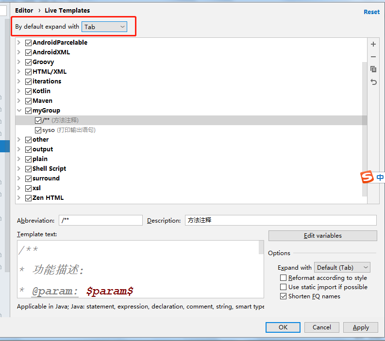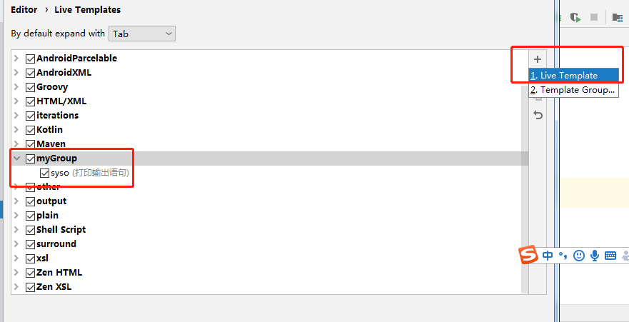 这里,我们先创建一个分组,然后将我们自定义的代码模板都放在该分组下,方便管理