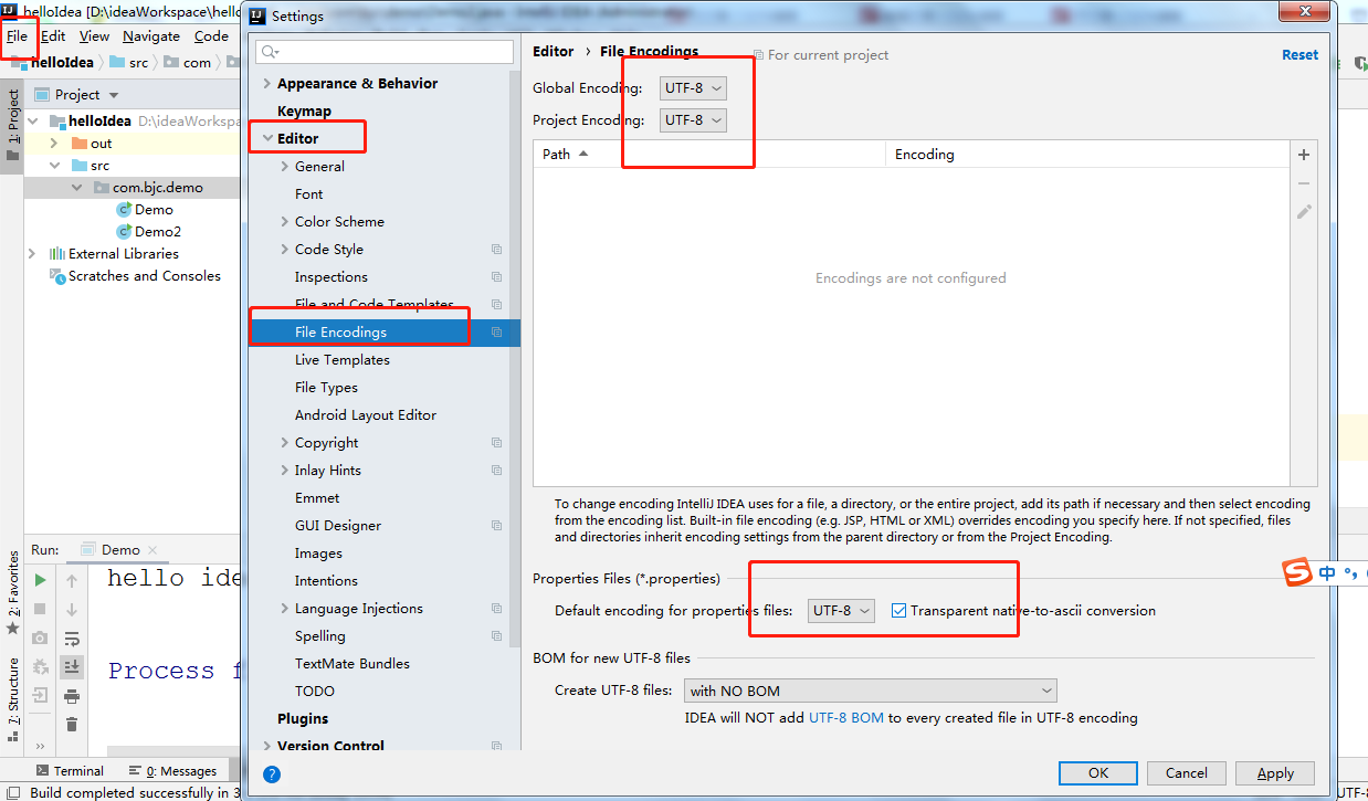 单击file-settings-Editor-file encodings,然后将编码设置为UTF-8,如下图所示: