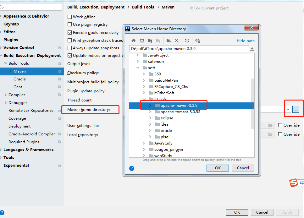 点击maven home directory后面的省略号,选择本地的maven,如图: