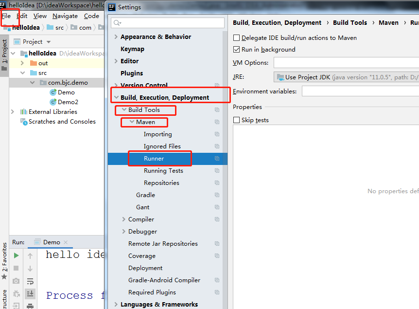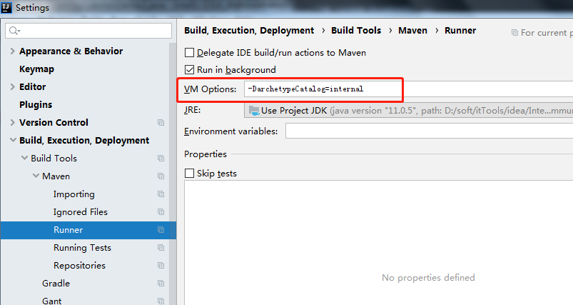 点击file-settings,在maven下有一个Runner,点击它,如图: