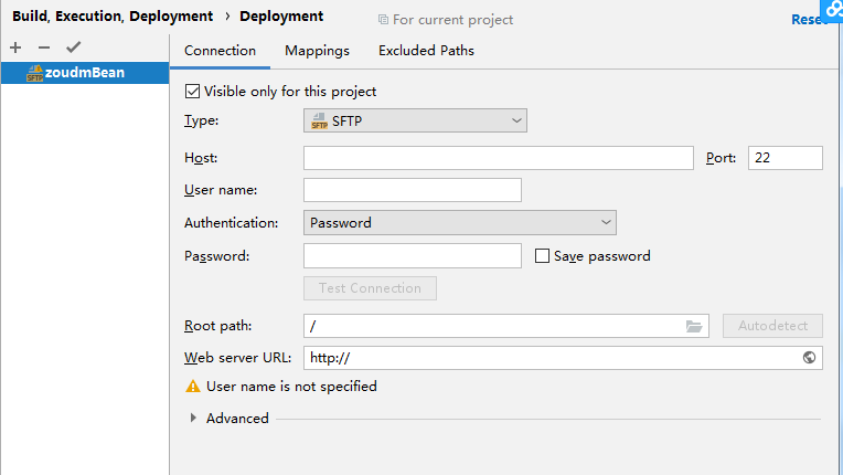 点击file——settings——Build,Execution,Deployment——Deployment,如图: