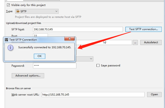在右侧链接视图填写相应的信息之后,点击Test SFTP Connection,测试成功说明链接成功,如图: