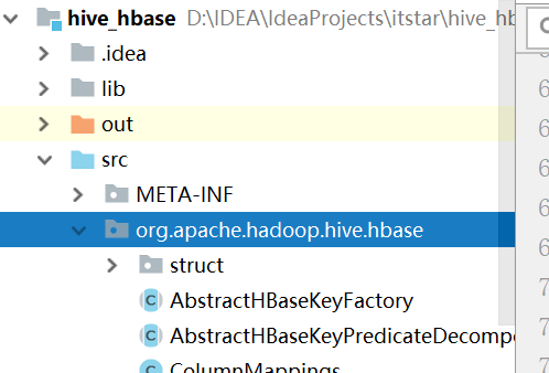 2. 进入Hive源码,找到hbase-handler文件夹。进入【hbase-handler\src\java】,找到org文件夹