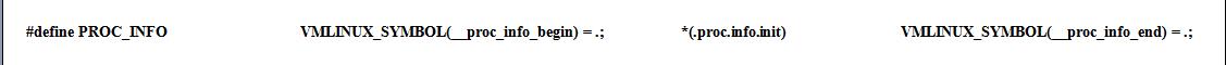VMLINUX_SYMBOL(__proc_info_begin) = .; *(.proc.info.init) VMLINUX_SYMBOL(__proc_info_end) = .;