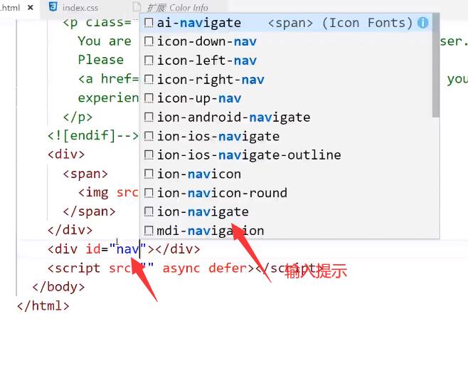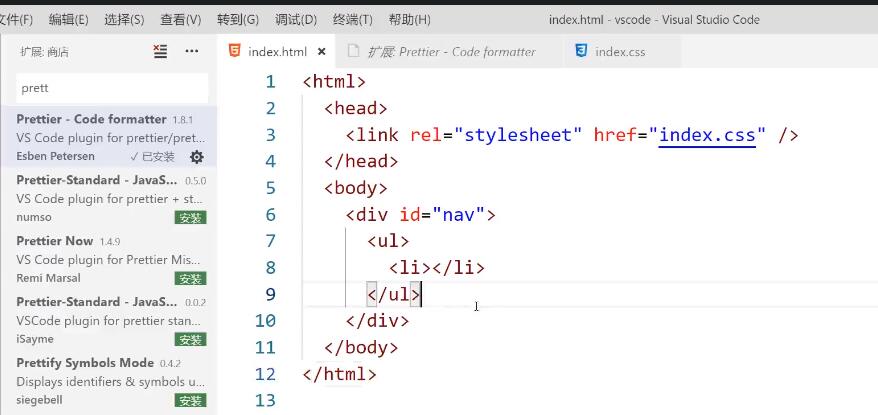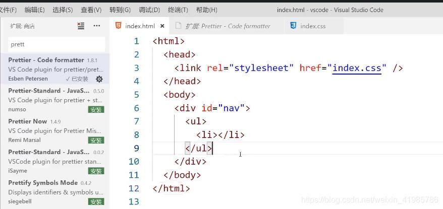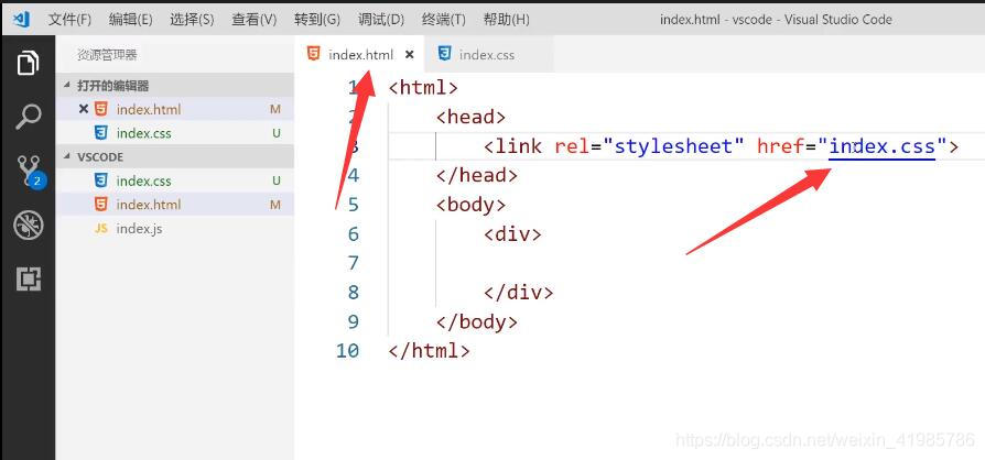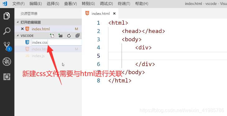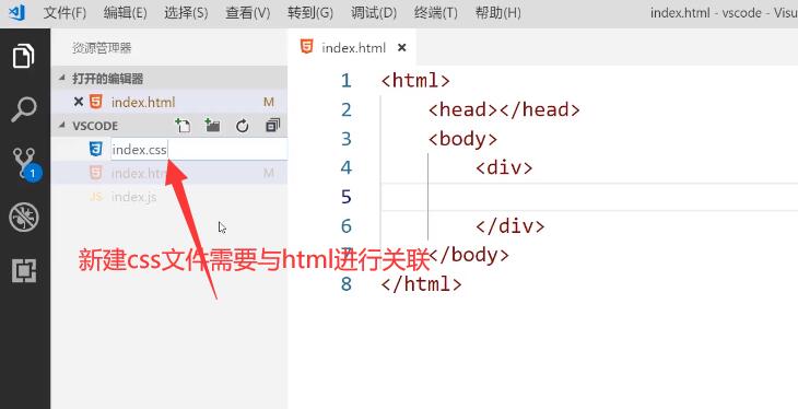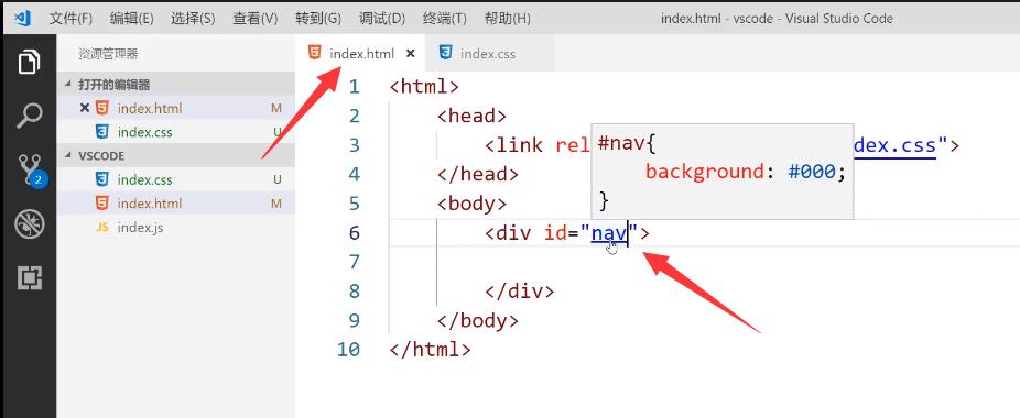 在html中新建一个id为nav的div元素,并通过Ctrl+鼠标左键进入index.css: