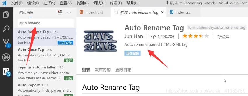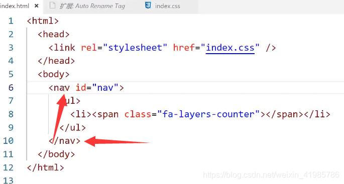 使用Auto Rename Tag插件,修改开始标签的同时结束标签也跟着改变: