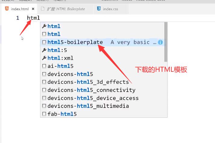 新建HTML元素标签,提示下载好的HTML模板选中: