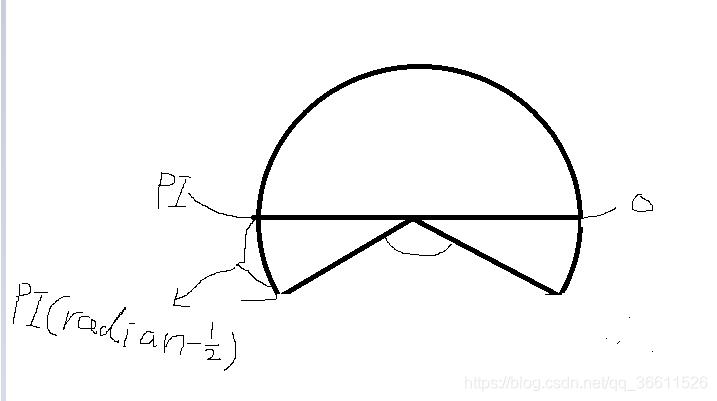 起始点一个半圆的大小就是PI,知道了radian属性值就可以计算出起始点了,Math.PI - Math.PI*(radian-1/2)就是起始点,知道了起始点,起始点加上总进度大小就是结束点了startPath+2*Math.PI*radian。说的可能有点抽象,自己拿笔画个图算一下也不难。