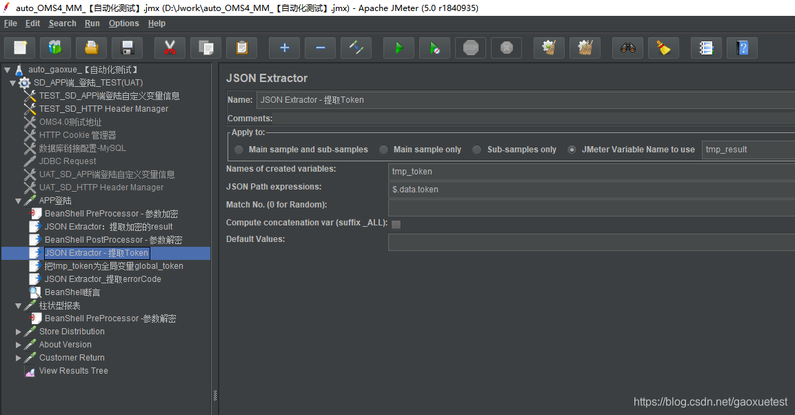 (4)添加json提取器提取Token结果