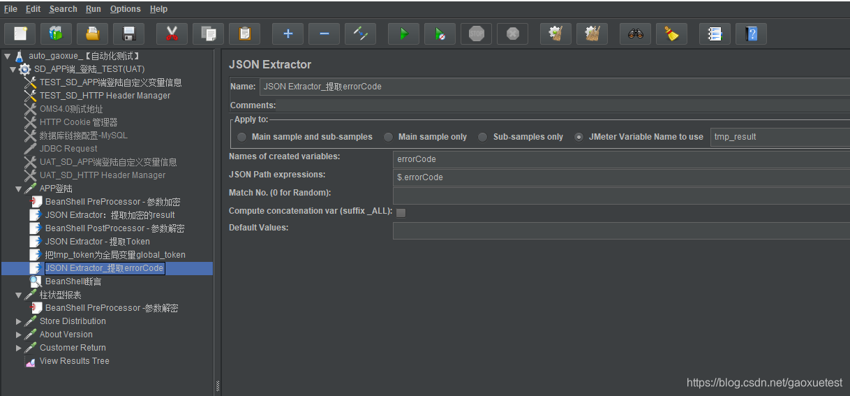 (6)添加json提取器提取执行结果