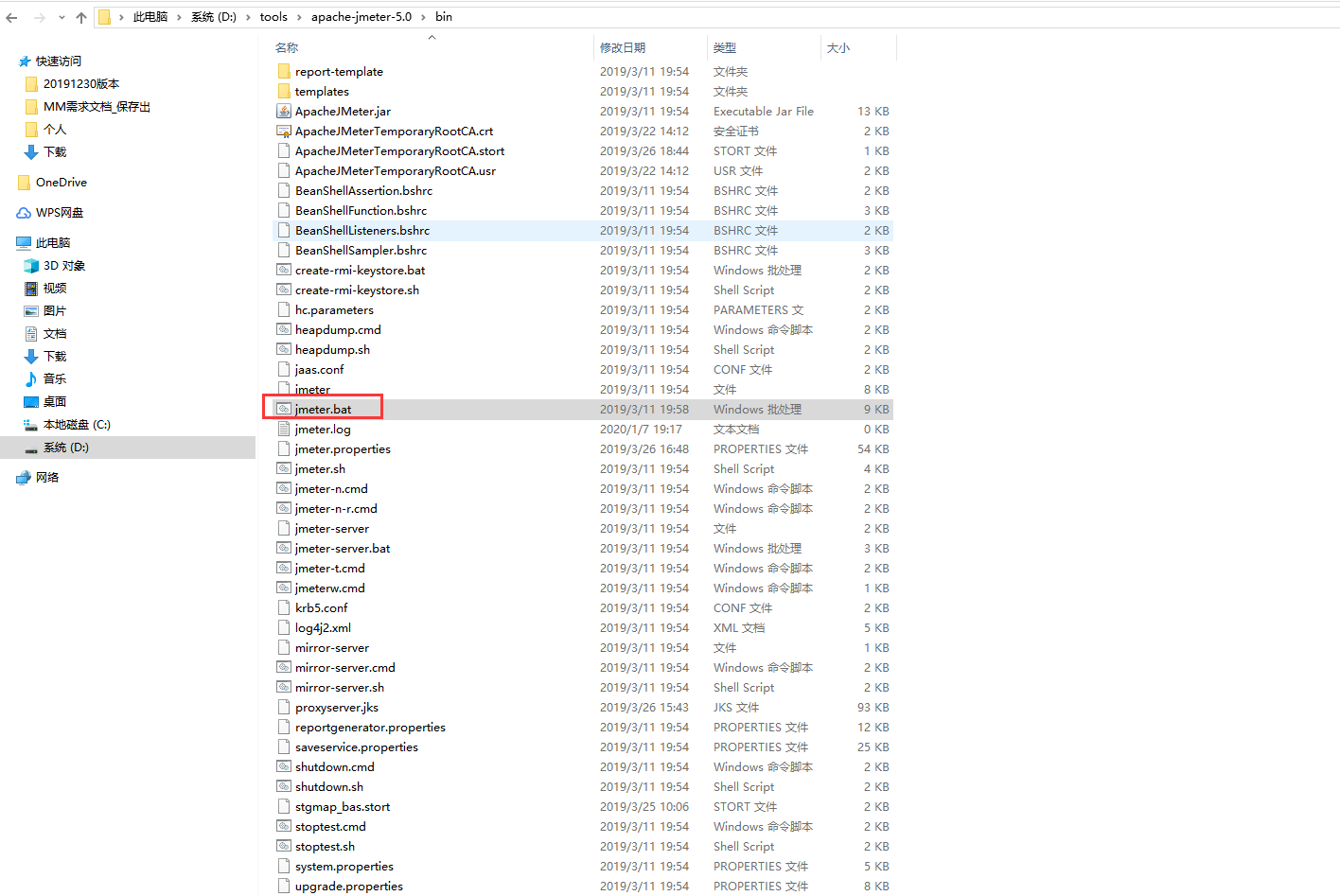 将下载得到的压缩包解压即可,这里我解压到自己电脑的路径为D:\tools\apache-jmeter-5.0。