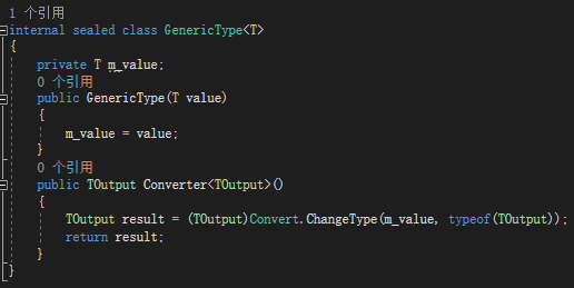 在上面例子中,GenericType类定义了类型参数T,Converter方法也定义了自己的类型参数TOutput。这样的GenericType可以处理任意类型。Converter方法能将m_value字段引用的对象转换成任意类型----具体取决于调用时传递的类型实参是什么。泛型方法的存在,为开发人员提供了极大的灵活性。