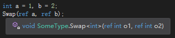 为获取out和ref参数的方法使用泛型类型很有意思,因为作为out/ref实参传递的变量必须具有与方法参数相同的类型,以防止损害类型安全性。